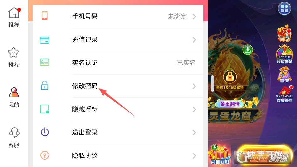 打开菜单后,点击修改密码按钮即可