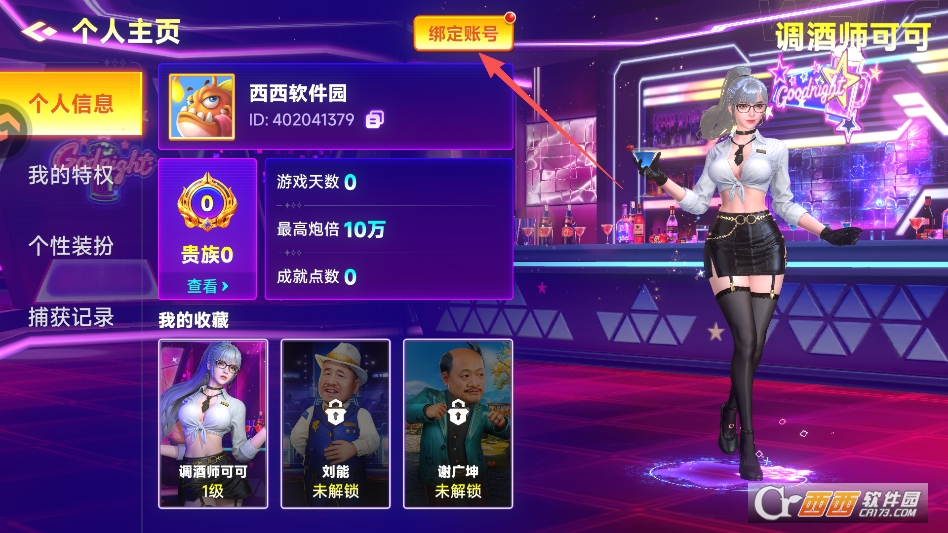 进入个人中心,点击绑定账号按钮即可
