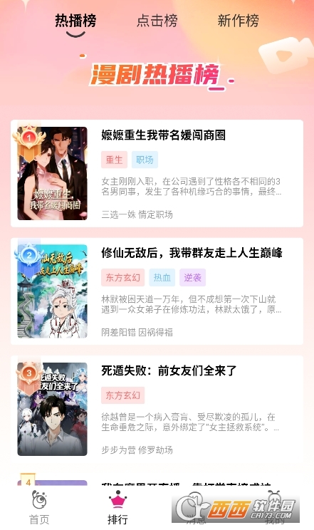 看看动漫漫剧app安卓版是一款非常好用的漫剧软件,提供最佳的漫剧资源,涵盖了不同类型的精彩漫剧剧集,非常受欢迎,感受不同风格的漫剧类型,包括星际、系统、逆袭、女频、修仙等等,非常好用,感兴趣的小伙伴们一定不要错过了。