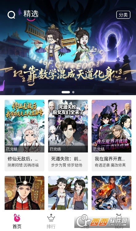 2、分类探索:点击底部“分类”导航,进入你喜欢的题材分区(如“星际科幻”),按“最热”或“最新”排序浏览。
