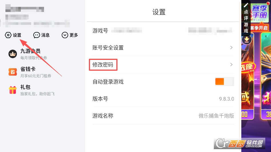 打开菜单,点击设置选项,在设置界面点击修改密码即可