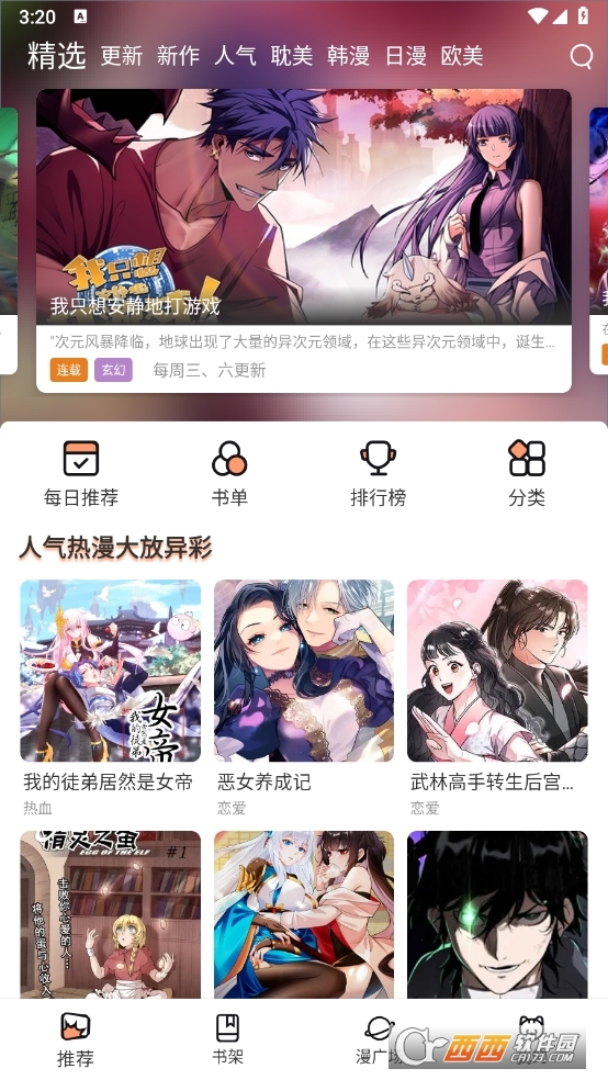 栗子漫画app最新免费版40.4M0人在玩栗子漫画app最新免费版是一款非常好用的在线漫画阅读工具,提供海量的在线漫画资源,涵盖热门国漫日漫,冒险恋爱,玄幻修真,搞笑科幻,校园日常等多种分类,每天