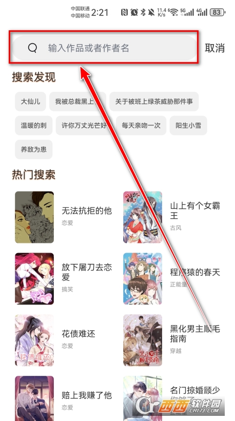 2、在搜索栏中输入你想找的作品名称或作者名字。