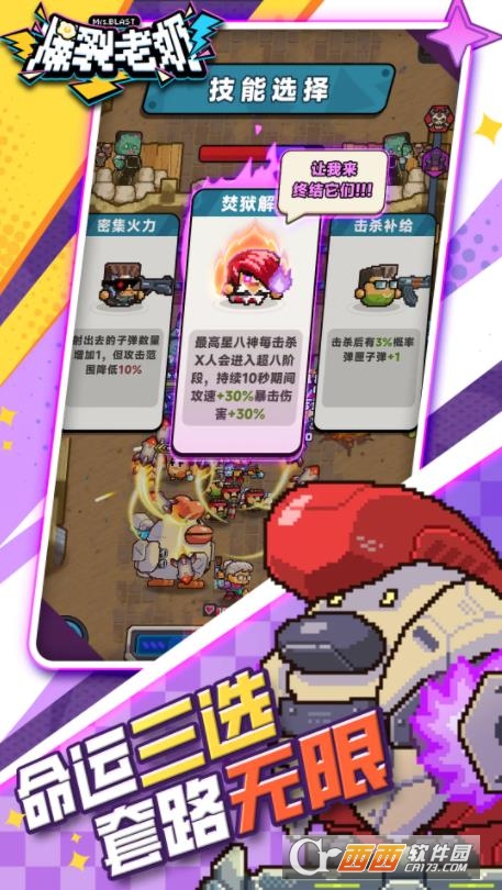 升级选技能强化:持续击败敌人获取经验完成升级后,会触发 “命运三选” 特色机制,玩家可从三个不同类型的技能中挑选其一强化战力,灵活适配不同战斗场景的输出需求。