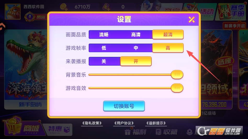 在设置界面,将画质和帧率设置进行调整尝试