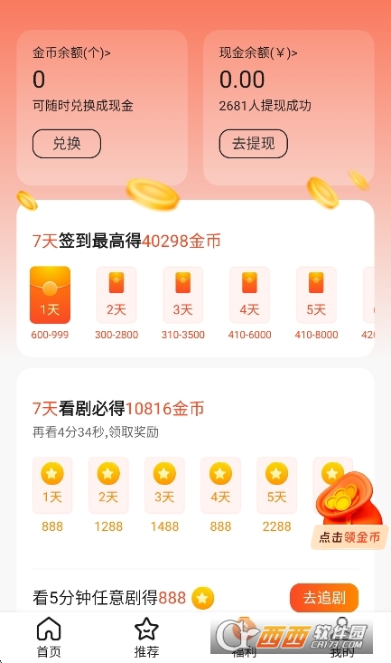 1、每日签到领金币,连续签到奖励递增