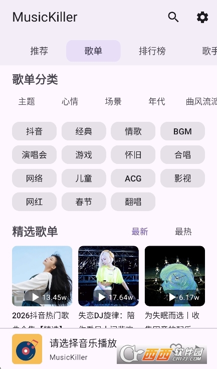 MusicKiller音乐app官方版是一款免费的音乐合集,为广大用户们准备音乐库体验,非常受欢迎,获得丰富的免费音乐资源,想听什么都可以,发现歌曲歌单,各种兴趣爱好都可以在这里展示,还支持搜索功能,感兴趣的小伙伴们一定不要错过了。