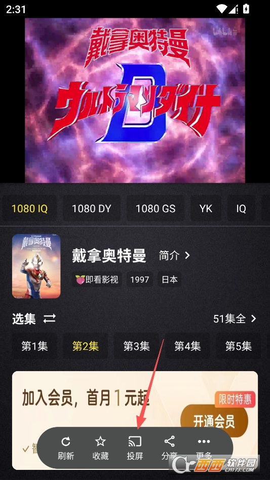 找到想要投屏的影视资源,点击下方的投屏按钮