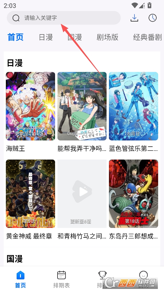 进入软件主页开始搜索想看的内容