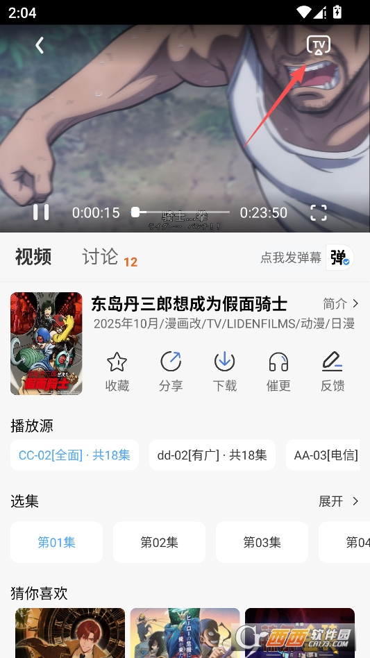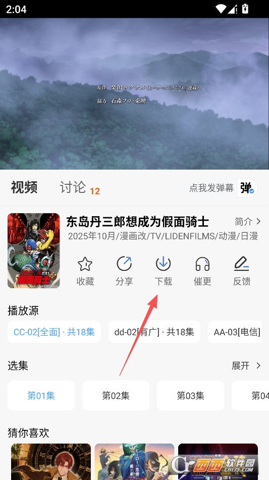 进入播放界面,点击下载按钮