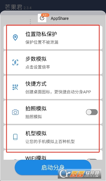 芒果君多开分身软件安卓版是一款多开分身助手软件,能够一键添加本地软件资源,可开启分身模式,一键开启多开分身,提供专业的分身工具,非常实用,能够为用户们准备不同类型的精彩分身操作体验,各种精彩应有尽有,欢迎来下载试试吧。