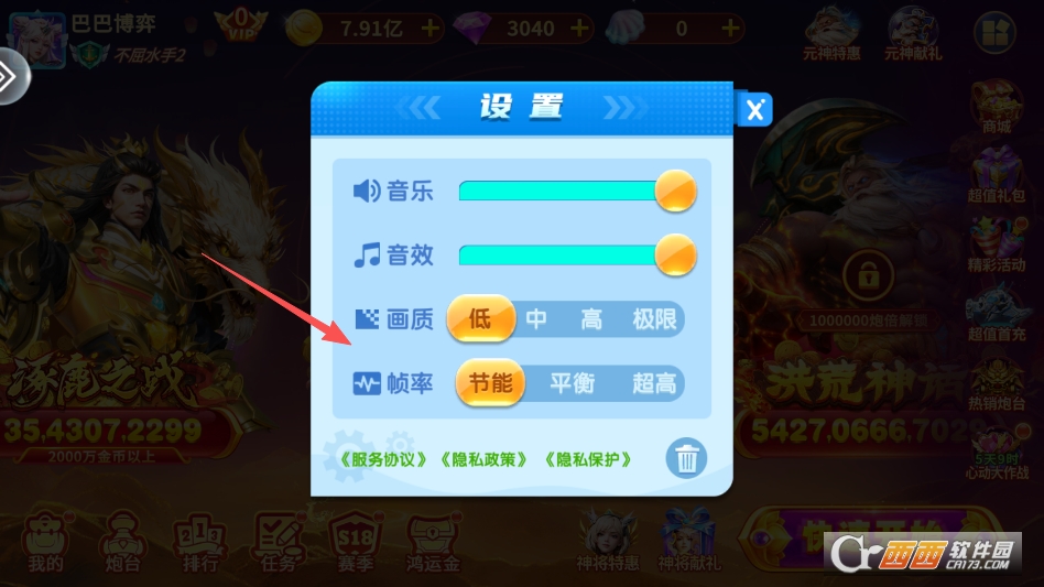 可能你的手机配置不太行所以太卡了,可以尝试调低一下画质,点击主界面右上角的设置按钮