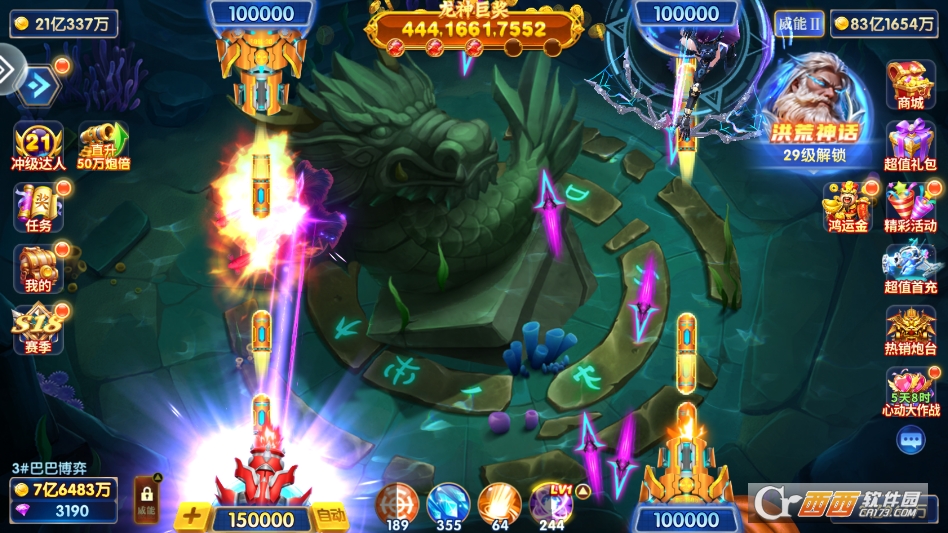 新增多种巨型BOSS,包括魔神哪吒、喷射龙龟等特色BOSS,每种新BOSS都有独特的技能和专属百亿倍率奖励,击败BOSS后不仅能获得大量金币,还能触发全屏爆金特效,提升游戏爽感。