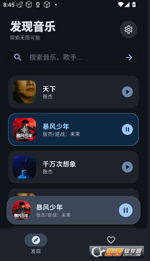 在西西软件园下载并且安装这个软件,打开软件即可,你可以输入自己喜欢的音乐和歌手,会有对应的结果