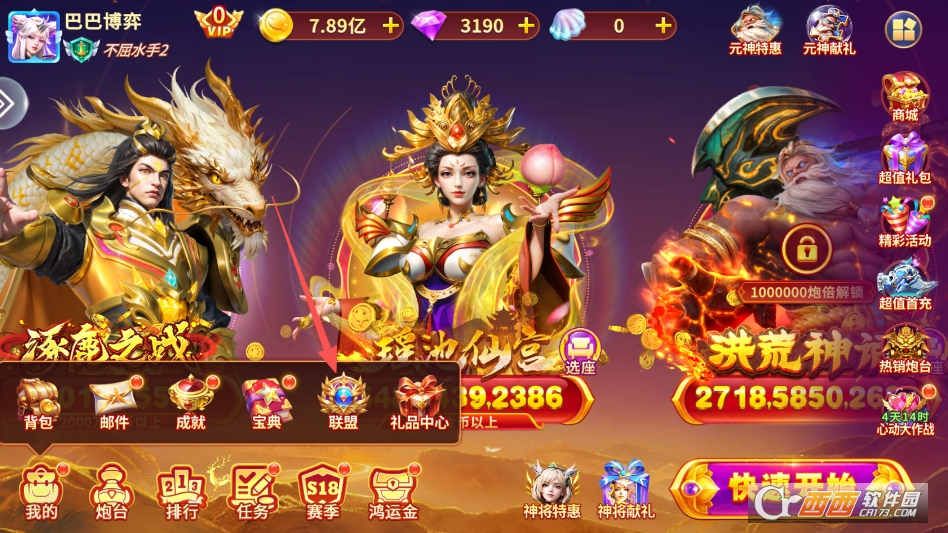 进入游戏后点击主界面左下角我的按钮,呼出额外选项,点击联盟按钮