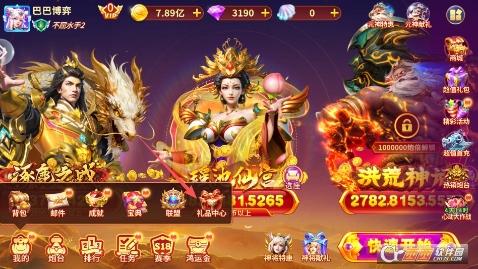 进入游戏点击主界面左下角我的,呼出额外选项点击礼品中心按钮