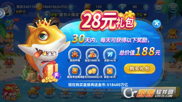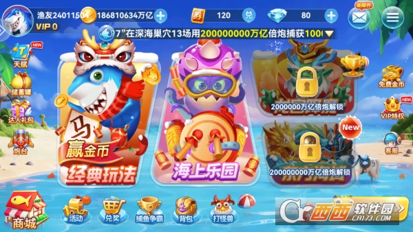新手七日礼:专为新玩家准备的豪华成长福利,注册登录即可领取海量金币、钻石、锁定道具等基础资源。每日完成简单任务可解锁进阶奖励,累计登录 7 天直接赠送满级炮台体验卡与稀有图鉴,帮助新手快速起步,轻松体验高倍捕鱼乐趣。