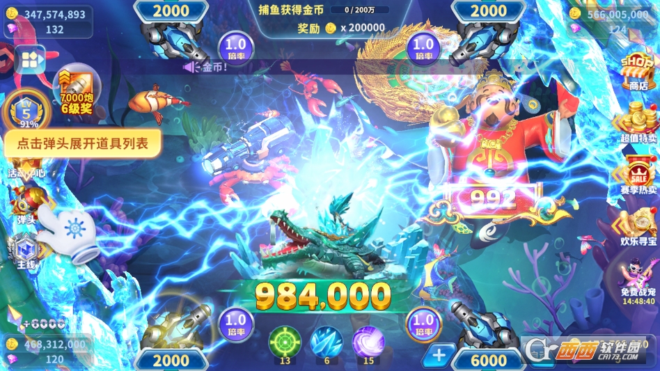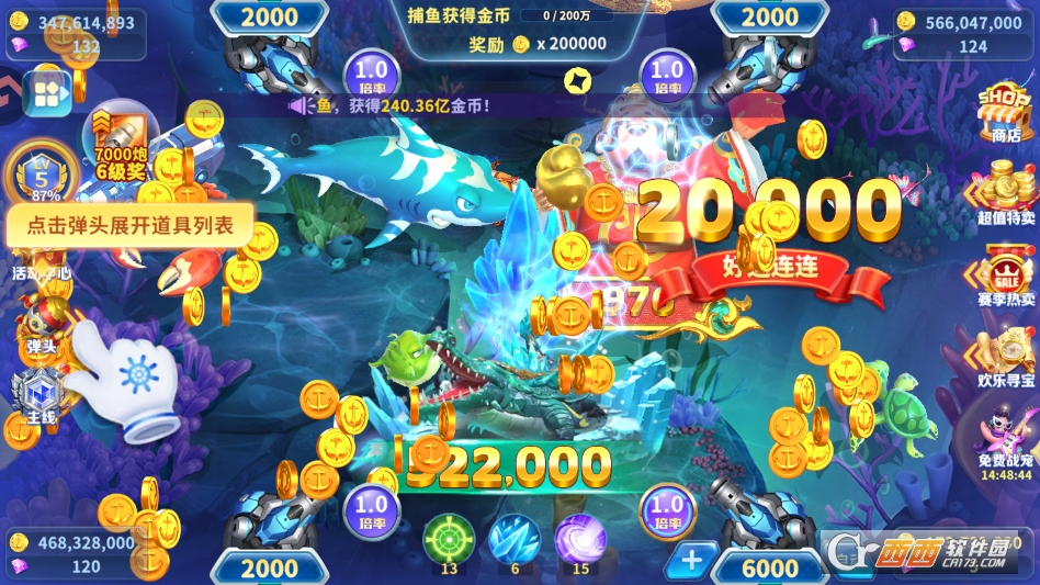 5. 不要盲目追打高分BOSS,新手初期先用低倍率炮台,瞄准密集的小鱼群,小鱼群捕获难度低、刷新率快,批量捕获能快速积累金币,为后续切换高倍率、挑战BOSS打下基础。