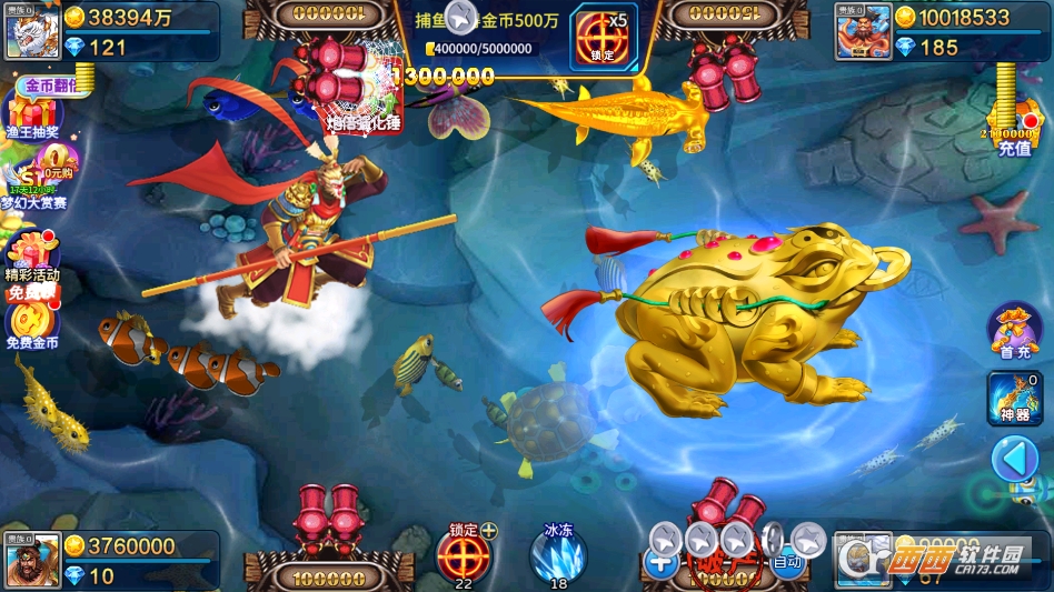 支持自动开炮和智能锁定功能,玩家可以开启自动开炮,解放双手,不用手动操作就能自动捕鱼、积累金币和积分,智能锁定功能能精准锁定高倍率鱼群和BOSS,减少炮弹浪费,碎片化时间玩几局刚刚好。