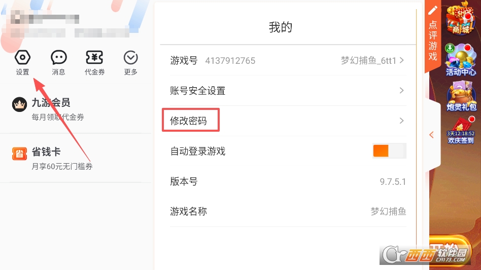 点击打开悬浮球呼出菜单,再点击修改密码选项即可