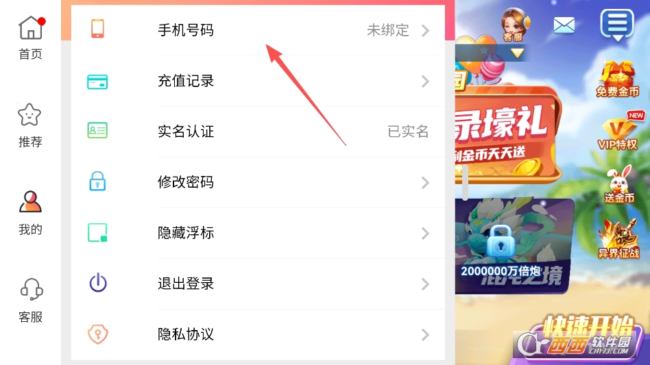 即可呼出菜单,点击最上方的绑定手机即可