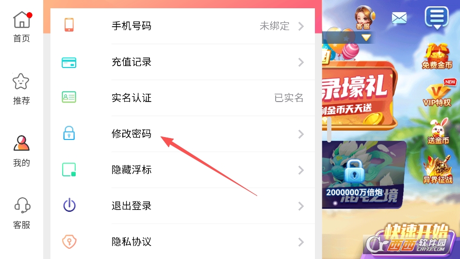 点击打开悬浮球可以呼出一个菜单,在菜单中点击修改密码功能即可