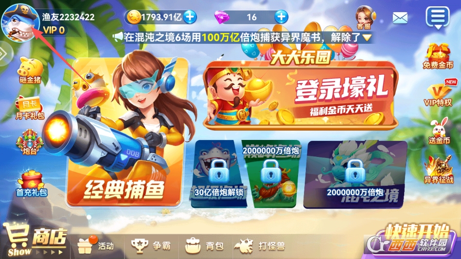 VIP福利持续更新,升级VIP就能解锁更多特权,专属炮台、海量金币、强力道具免费领,还有专属渔场可以解锁,渔场里鱼群倍率更高、BOSS刷新更频繁,让玩家捕鱼更轻松、收益更高。
