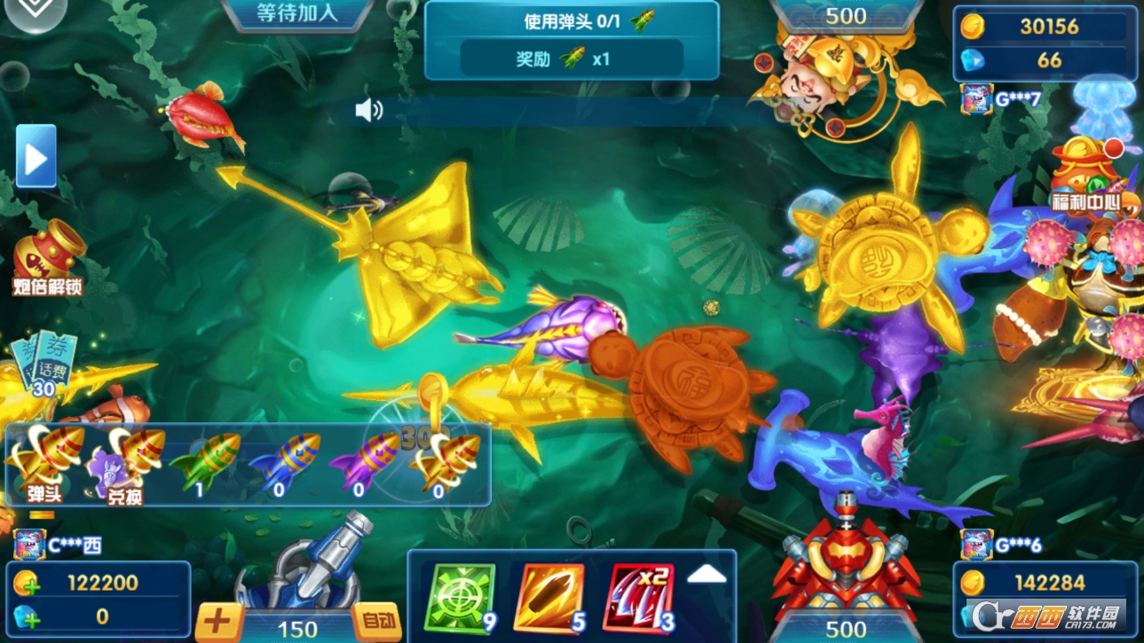 3. 炮台和技能系统丰富,多种不同威力的炮台可解锁升级,冰冻、激光等技能按需使用,策略捕鱼更具趣味性。