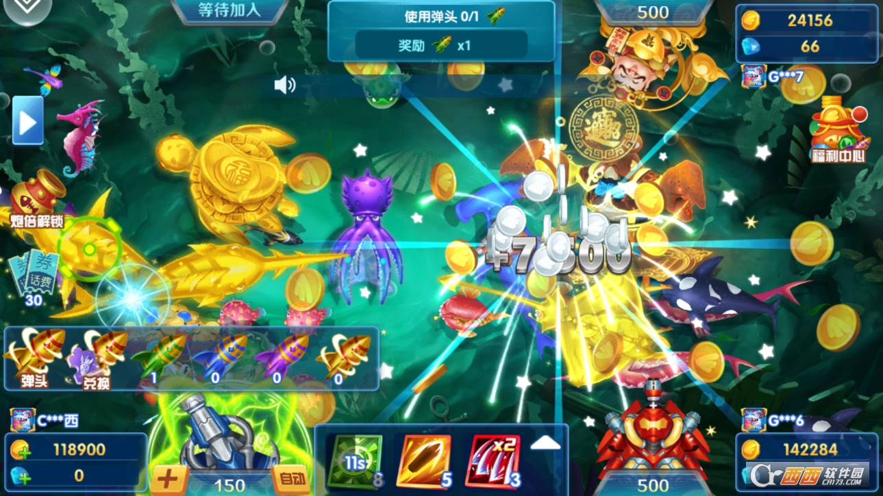 3. 游戏里有多种炮台可以解锁和升级,升级后的炮台火力更强,捕捉大鱼的几率也更高,让捕鱼变得更轻松。