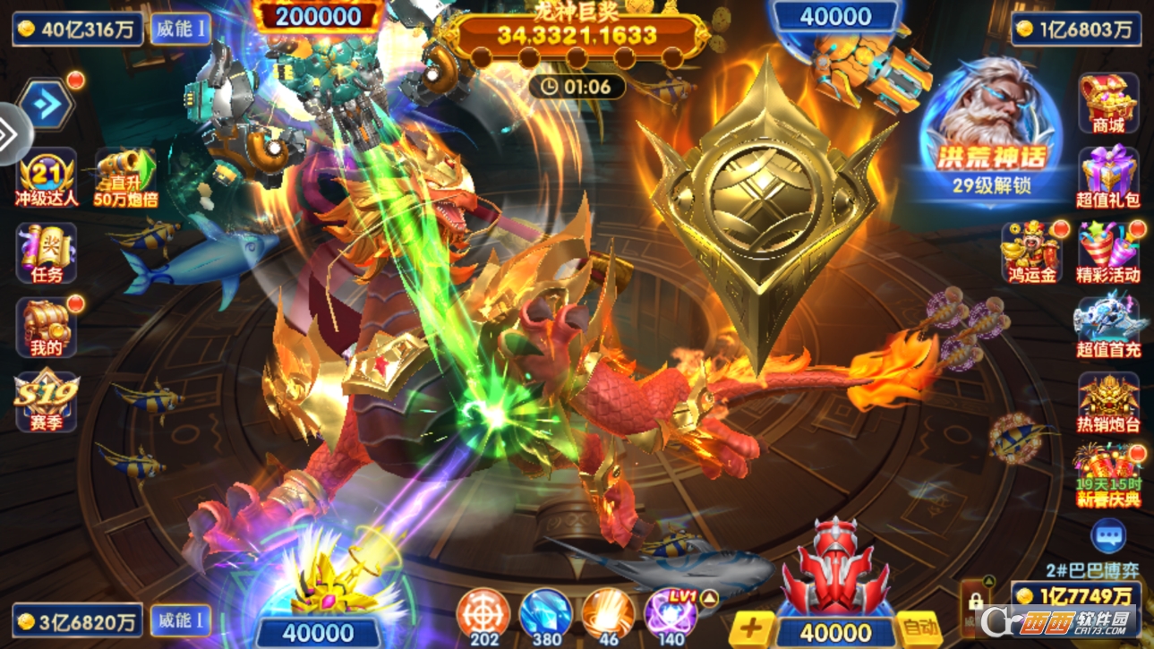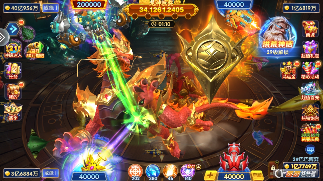 2. 玩法丰富多样,捕鱼房、活动房、神话场、排行榜玩法全覆盖,每种玩法各有特色,基础捕鱼解压,高阶玩法有挑战,杜绝单一枯燥。
