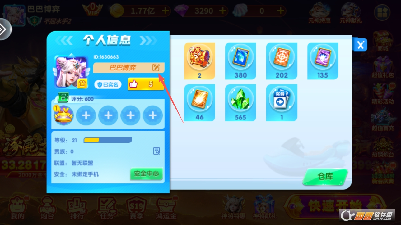 来到个人中心界面,点击名字右侧按钮即可进行改名