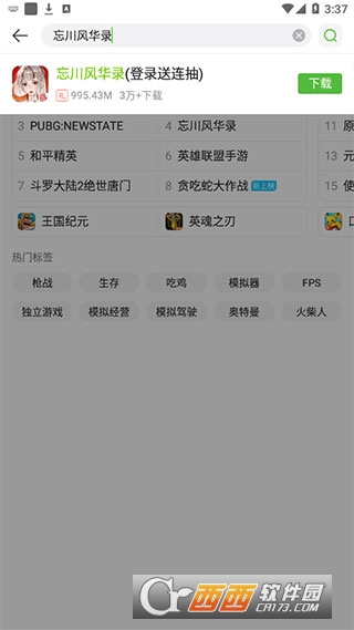 2、如果有想要下载游戏的话,直接点击首页上方空白框架,输入想要下载的游戏名称,一键下载即可,比如忘川风华录。