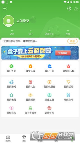 5、在最后一个模块中可以进行签到、完成每日任务赚取盒币,以及使用盒币在商店中兑换想要的物品或虚拟币。