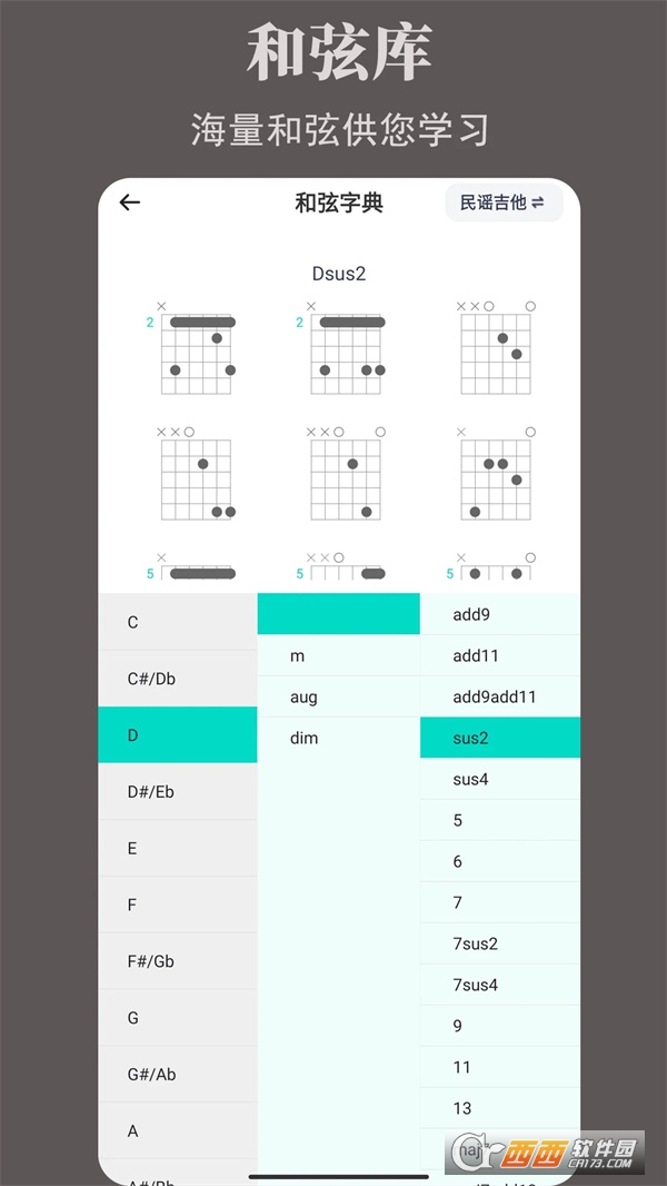 3、也可以对需要的和弦词典进行查询,快捷查询和弦图表。