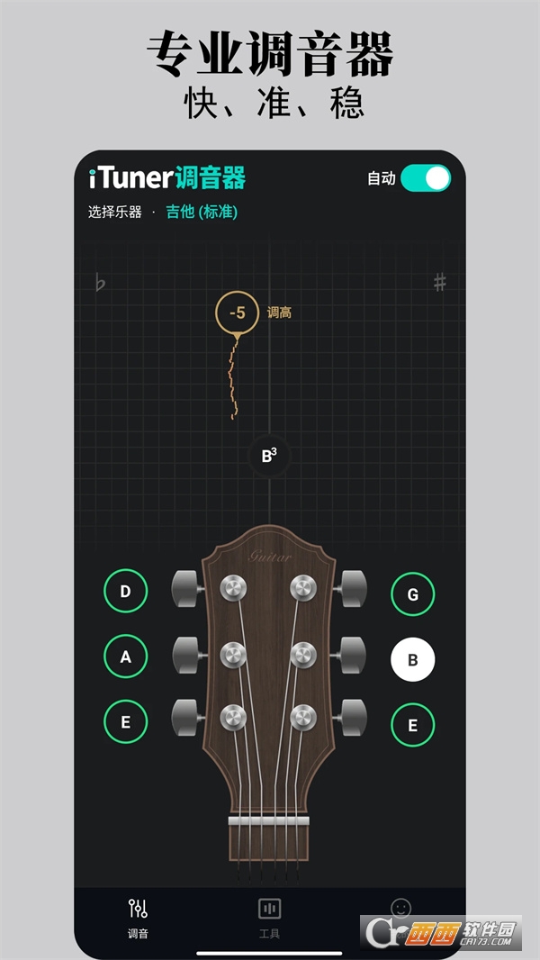 • 内置丰富的 特殊调弦模式(如Drop D, Open G等),一键切换。