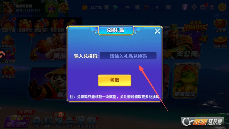 即可输入兑换码进行奖励的领取