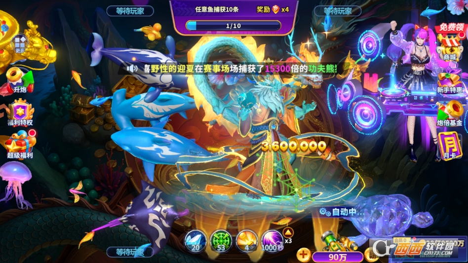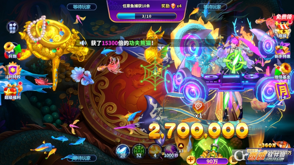 新增多种丰富的游戏场景,不同场景有独特的海底风光、鱼群分布和玩法规则,包括神话传说专场、仙魔大陆等特色场景,打破传统场景的单调感。