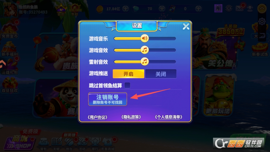 进入设置菜单,点击下方的注销账号按钮即可