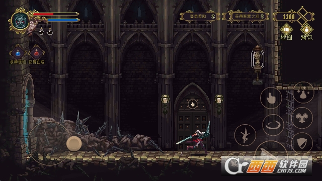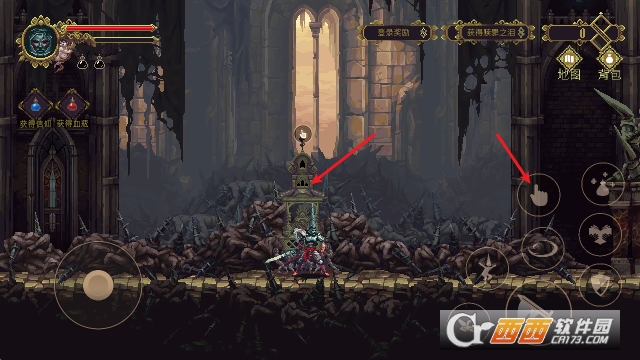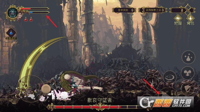 基础操作采用左侧摇杆控移动,右侧按键实现滑铲、跳跃、攻击等全系列行动,冒险途中遇到神龛可即时恢复生命值,遭遇敌人展开战斗后,攻击能积累蓝条,击败敌人还可获取赎罪之泪核心奖励。