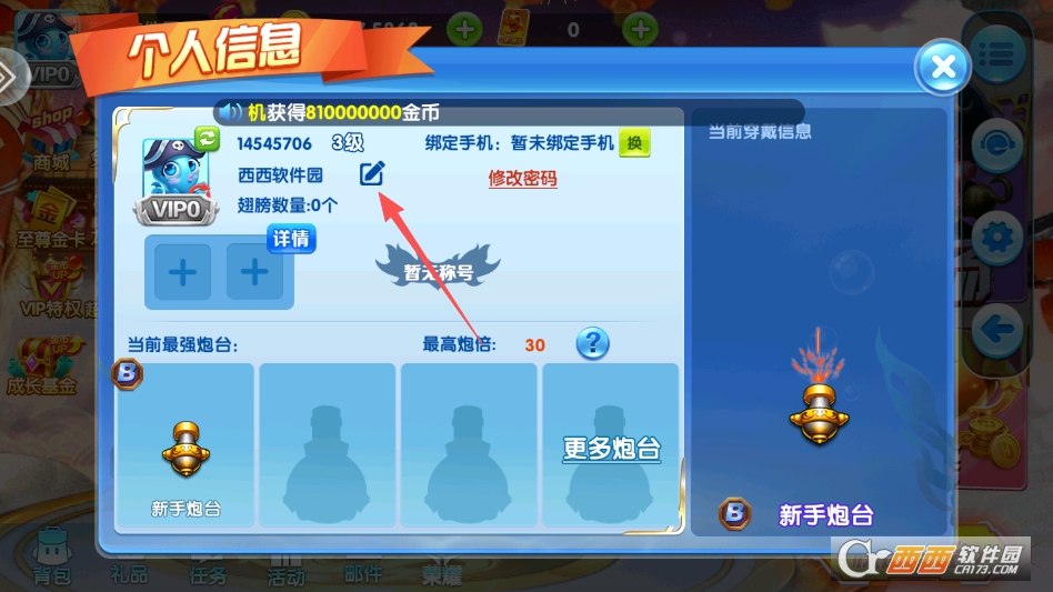 打开个人中心后,点击名字右侧的按钮来进行改名