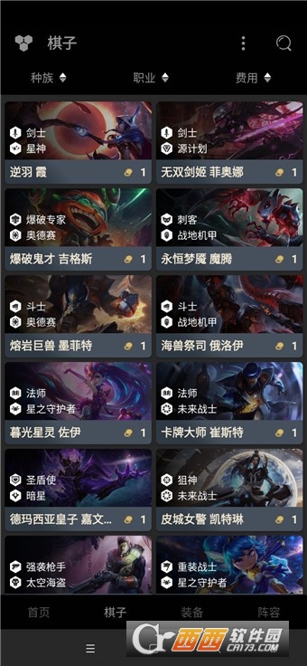 2、可以选择按名称搜索,或按羁绊、费用、类型筛选。
