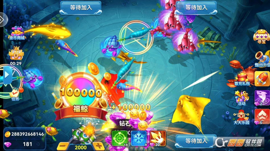 优化了画面显示效果,提升了海底场景和鱼类的细节质感,捕捉特效更加酷炫,全屏暴击的视觉冲击更强。新增捕鱼庆典、感恩豪礼等限时活动,玩家参与活动可获得庆典徽章、亿万金币,还能兑换专属炮台和翅膀。