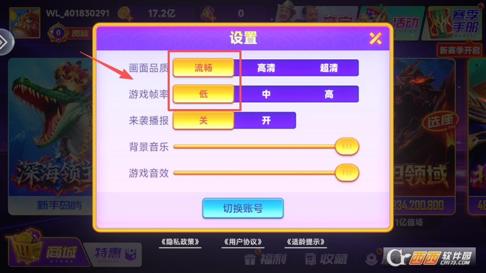 在设置菜单中,降低游戏画质和帧率,即可缓解卡顿