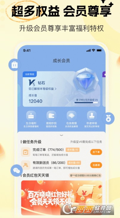 福利兑现高效:所有返利、活动奖励均支持极速到账,无套路限制和提现门槛,会员每日打卡还能兑换可提现红包,权益兑现流程简单,到账信息实时推送提醒。