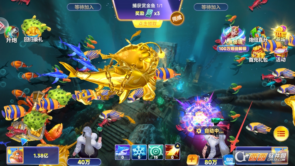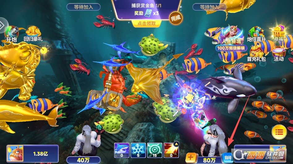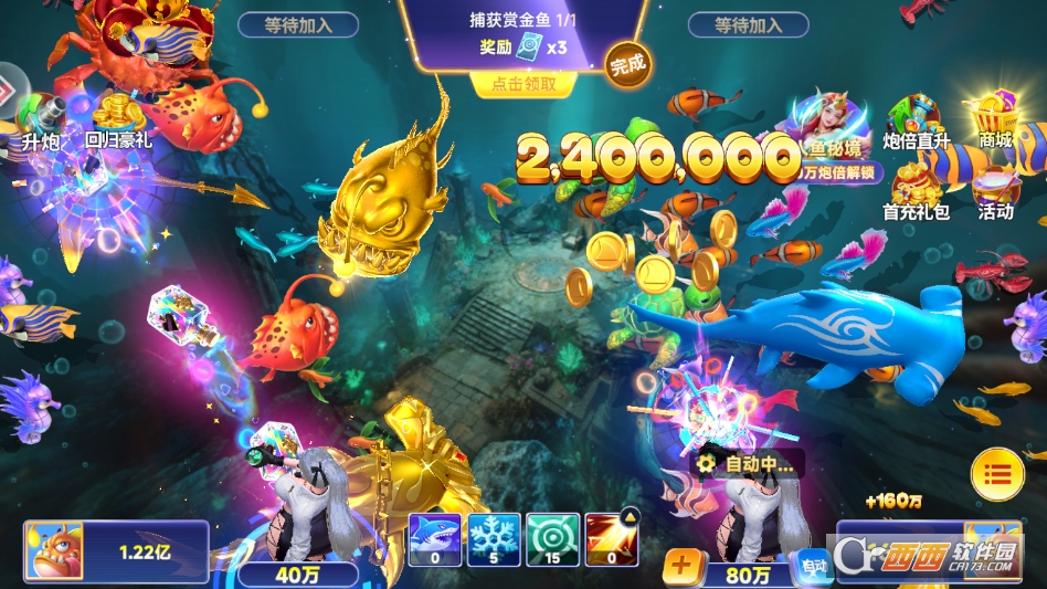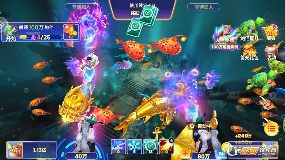 炮台切换有技巧,根据鱼类大小与密度灵活选择,普通炮打小鱼、激光炮打中型鱼、冰冻炮打密集鱼群或高速鱼。冰冻炮可冻结鱼群,延长鱼类停留时间,遇到密集鱼群或游速快的鱼时使用,能大幅提升捕获率。