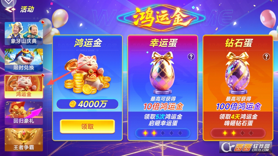 进入活动专区,即可领取鸿运金的大量免费金币