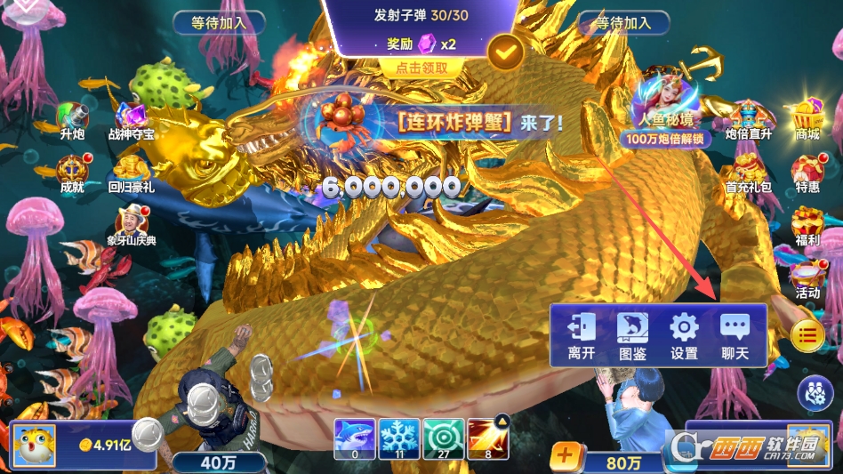呼出菜单后,点击聊天按钮,即可在渔场中发送弹幕进行聊天了