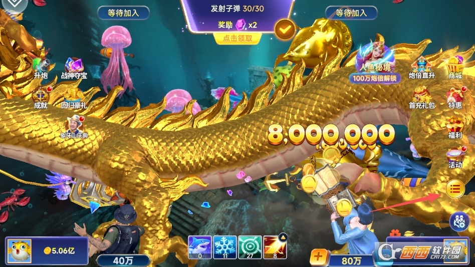 首先需要进入渔场,然后点击右下角的金色按钮