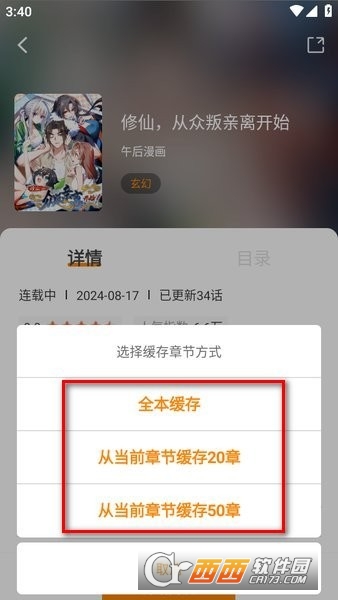 如果需要离线缓存漫画,就点击“开始阅读”旁边的“下载”,可以选择缓存的方式,很人性化;