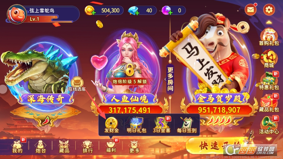 亮点之三是**随时可玩、无门槛**,没有时间约束、没有等级限制,打开游戏就能直接进入渔场,操作简单、上手快速,新老玩家、不同年龄段的玩家都能轻松适配。
